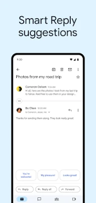 • Respond to emails quickly with Smart Reply suggestions
