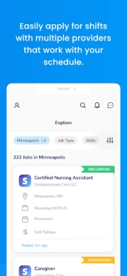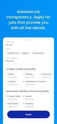 - Apply for jobs knowing all the details - Customize a schedule that works for you - Explore one-time, temporary, and permanent caregiving jobs - Earn badges and maintain a perfect point score positioning you for better jobs - Earn a spot on our leader board - Easily tag friends to fill-in for shifts - Build your team and get paid for every hour worked by your referrals