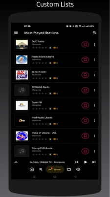 - Most played stations list - Recently played stations list - List stations by geographical categories - Favorite stations which will be synced to your account - Dark Mode support - Customizable UI and menu * and many more features